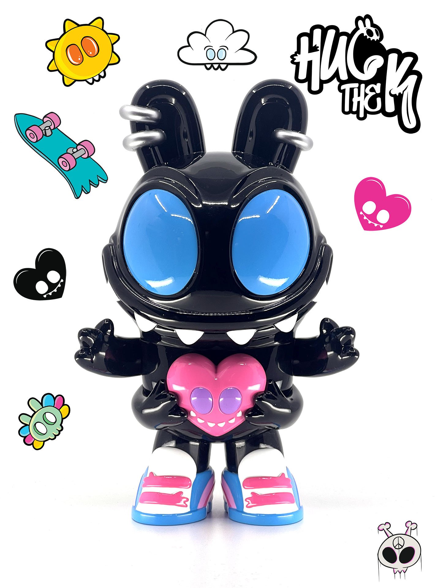 Hug the K, a dope cosmic creature, chills in a vibrant, graffiti-splashed cloud paradise. His motto:, "Fear It or Hug It" hits different—it's all about the choice we face when life throws new vibes or challenges our way. In a world full of chaos, a Hug is the ultimate power-up.